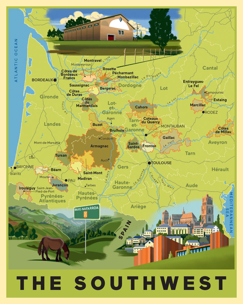 ‘The Southwest is almost definitionally the Great Other of French wine. It doesn’t fit neatly with other regions; instead, it is a compilation of multiple places and traditions — not quite Atlantic and not quite Mediterranean, mountainous in its opposite corners and generously lowland in between, effectively occupying nearly a quarter of France.’